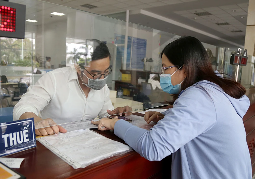 Cán bộ Cục thuế TP.HCM đang hướng dẫn hồ sơ, thủ tục cho người dân đến liên hệ. Ảnh: HOÀNG GIANG