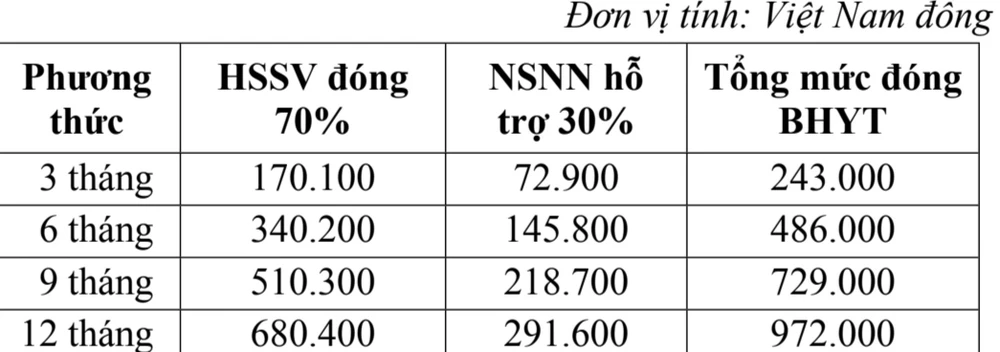1. Mức đóng BHYT Học sinh, sinh viên: