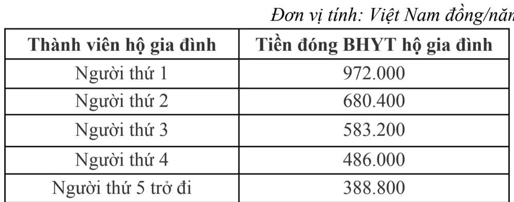 Mức đóng BHYT hộ gia đình theo thứ tự các thành viên khi đủ điều kiện giảm phí như sau: