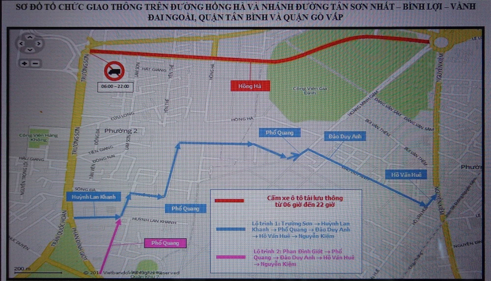 Cụ thể, nhằm kéo giảm tình trạng ùn tắc giao thông khu vực sân bay Tân Sơn Nhất, kể từ 6 giờ ngày 12-11, đường Hồng Hà và nhánh đường Tân Sơn Nhất - Bình Lợi - Vành Đai Ngoài (đoạn đường từ đường Trường Sơn đến đường Nguyễn Kiệm) theo hướng lưu thông từ đường Trường Sơn đến đường Nguyễn Kiệm, quận Tân Bình và quận Gò Vấp sẽ cấm xe ô tô tải lưu thông trong khoảng thời gian từ 6 giờ đến 22 giờ mỗi ngày.