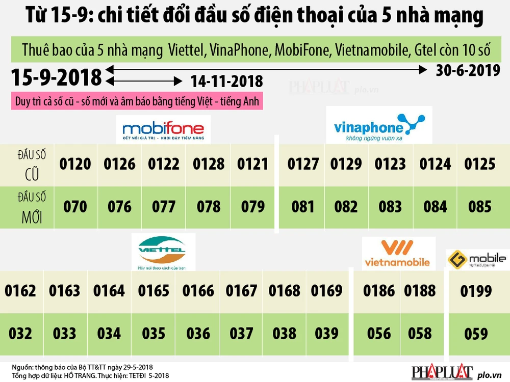 Từ 15-9-2018: Đầu số điện thoại nào của 5 mạng còn 10 số?