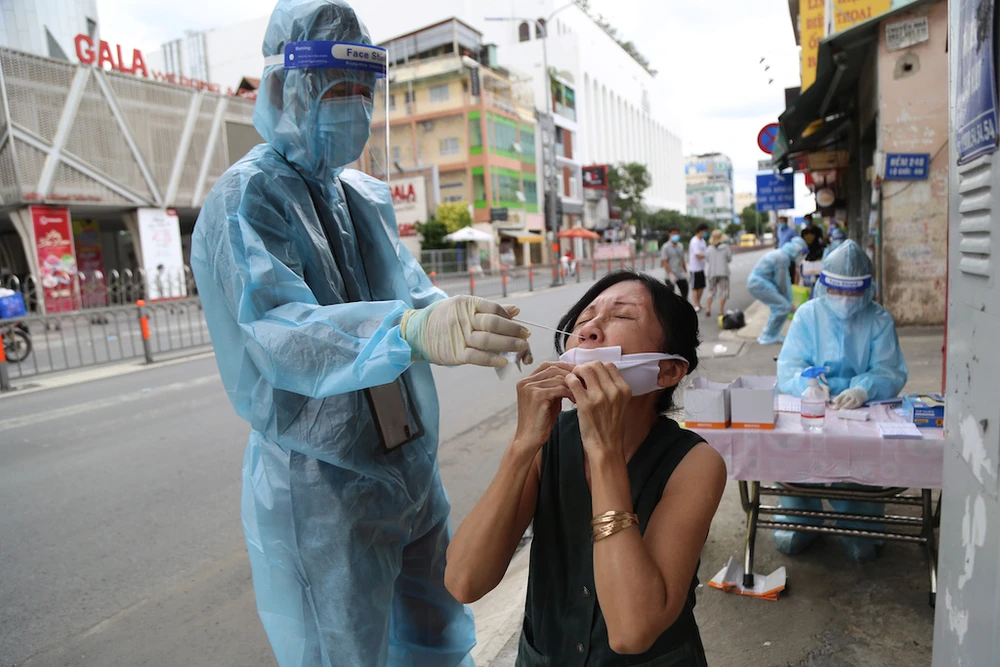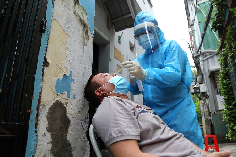 Lấy mẫu xét nghiệm nhanh tại phường 4, quận Tân Bình. Ảnh: Hoàng Giang
