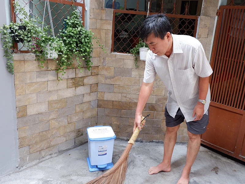 Các thành viên trong gia đình ông Nguyễn Thành Phục đã được UBND phường 4, quận Tân Bình, TP.HCM hướng dẫn phân loại rác trước khi bỏ đi. Ảnh: ĐÀO TRANG