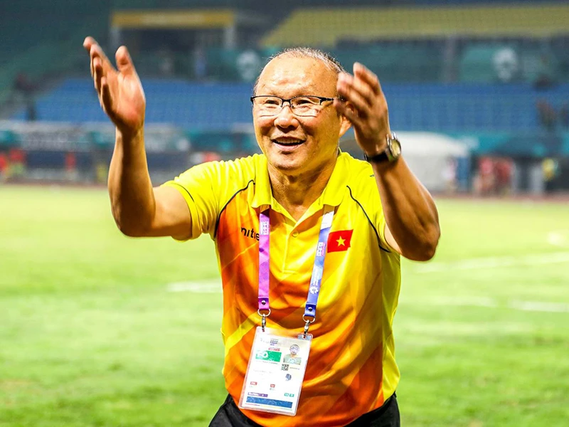 Người truyền lửa Park Hang-seo cùng bóng đá Việt Nam đi vào lịch sử Asiad. Ảnh: HUY PHẠM