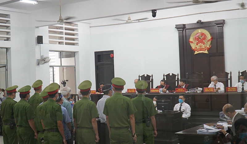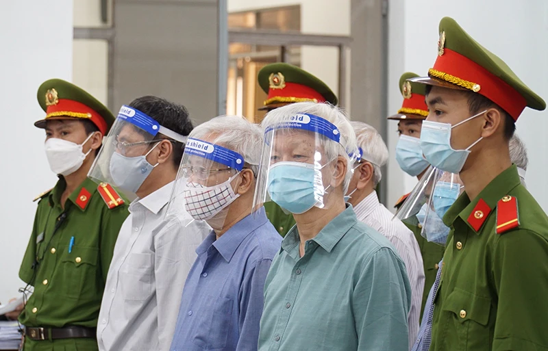 Các bị cáo nghe VKS luận tội. Ảnh: LÊ HIỀN
