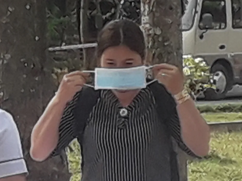 Đeo khẩu trang ngay sau có biểu hiện sốt, ho, đau họng, khó thở. Ảnh: TRẦN NGỌC