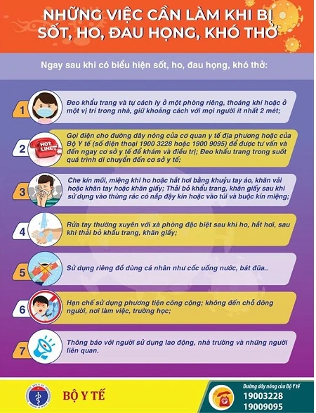 Theo Bộ Y tế, ngay sau có biểu hiện sốt, ho, đau họng, khó thở, cần thực hiện những bước sau: