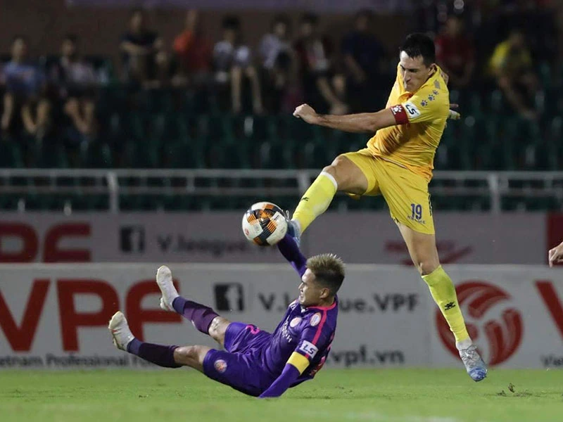 Nam Định tự quyết được số phận nếu giải quyết được trận đấu trên sân Vinh bất kể Quảng Nam có thắng Hải Phòng. Ảnh: PHƯƠNG NGHI