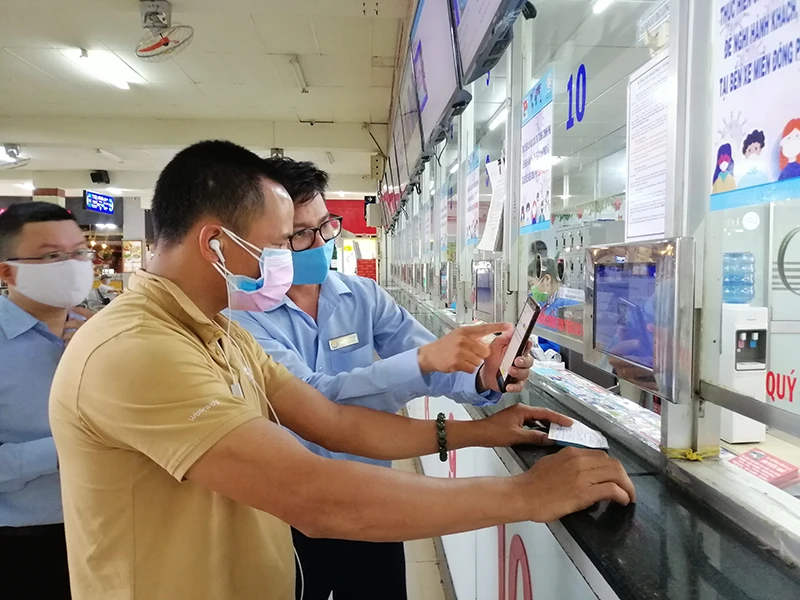 Còn theo đại diện Bến xe Miền Đông, bến xe đã thực hiện hướng dẫn khai báo điện tử cho tất cả DN bằng thông tin trên màn hình led, website, dán thông báo ở cửa ra vào, quầy vé và trang bị 20 máy tính bảng. Hành khách sẽ tự khai y tế, nếu hành khách không nắm được cách kê khai thì có nhân viên hướng dẫn. Các trường hợp mua vé online và mua trực tiếp, hành khách chưa thực hiện kê khai thì DN vận tải sẽ nhắc nhở thực hiện.