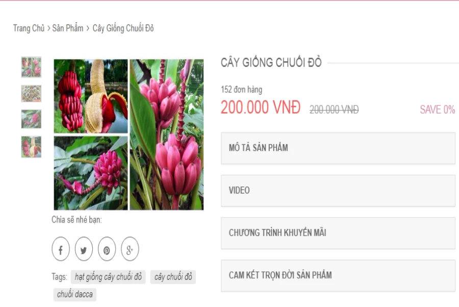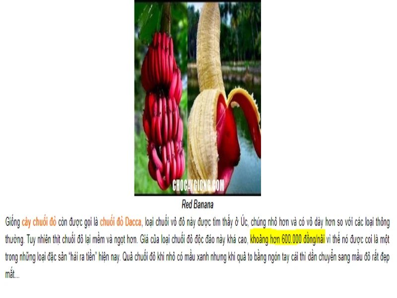 Một trang quảng cáo giống chuối đỏ Dacca cho biết hơn 600.000 đồng/kg.