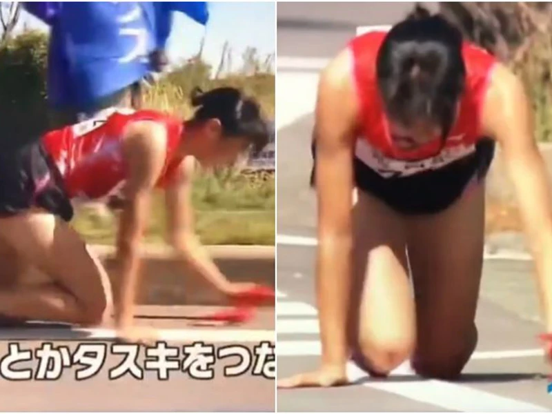 Hình ảnh cô sinh viên Nhật Rei Iida, 19 tuổi, bò về đích trong đau đớn được lan truyền đi khắp thế giới. Ảnh: GETTY IMAGES