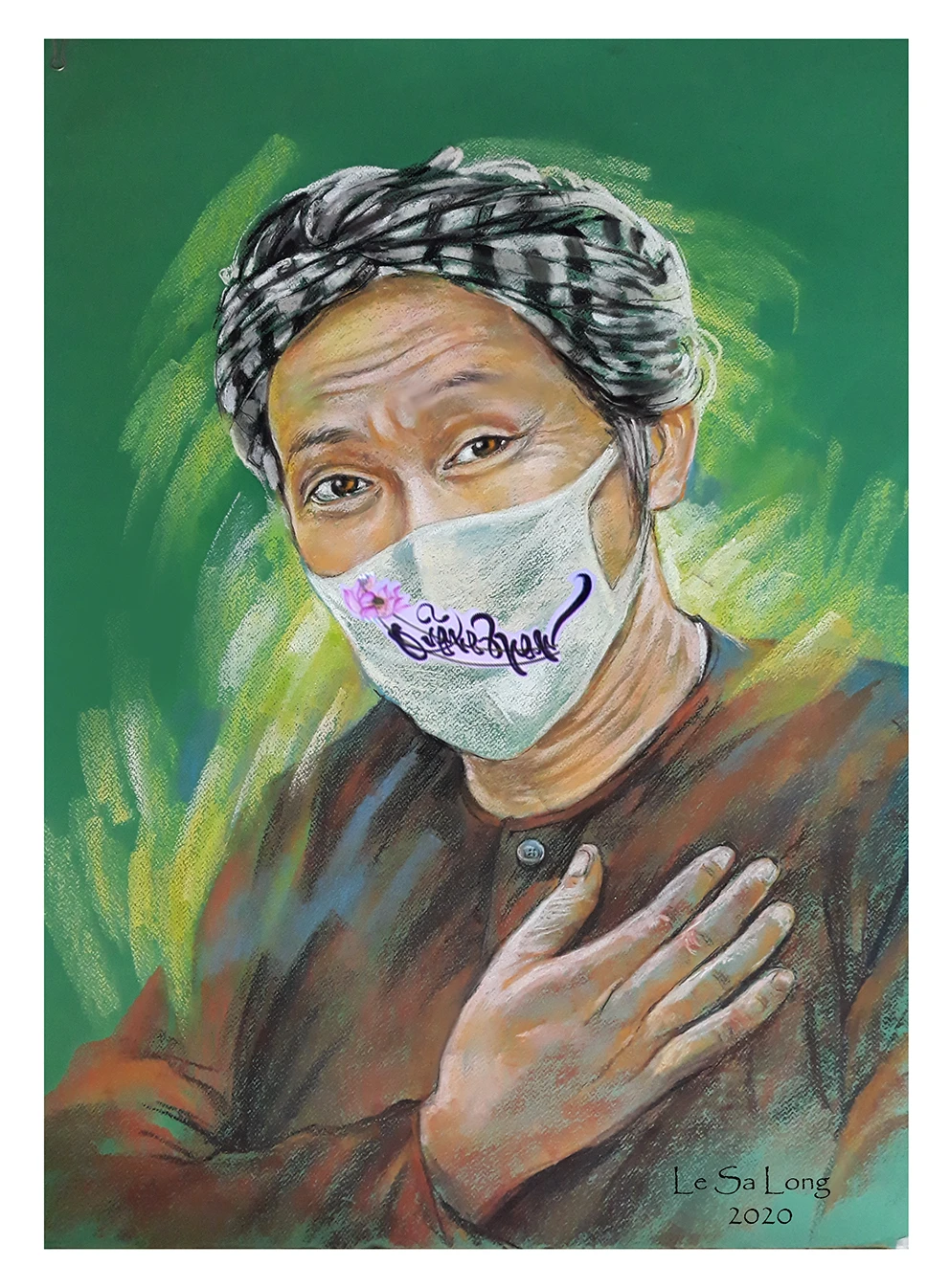 Hưởng ứng tinh thần đó, từ tháng 7, họa sĩ Lê Sa Long đã bắt tay vào vẽ trang dự án “Khẩu trang và người nổi tiếng” nhằm kêu gọi mọi người nâng cao ý thức phòng chống dịch với thông điệp “Bạn vẫn đẹp khi mang khẩu trang”.