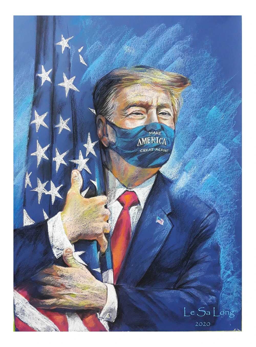 Tổng thống Mỹ Donald Trump. Ngay sau khi bức tranh được tác giả công bố, một người yêu nghệ thuật ở nước ngoài đã xin chuyển nhượng bản quyền toàn bộ 30 tranh của ông để họ in ra làm poscart phổ biến trong cộng đồng.