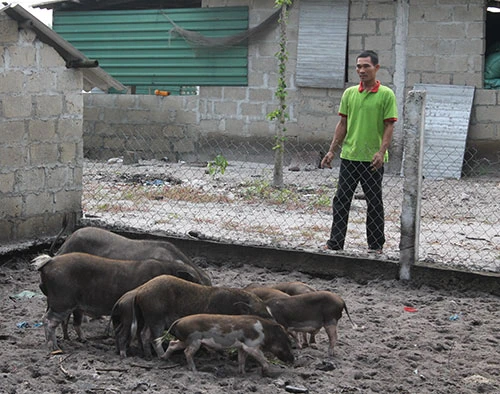 Anh Hồ Kham trước trang trại heo rừng của mình - Ảnh: VIẾT LONG