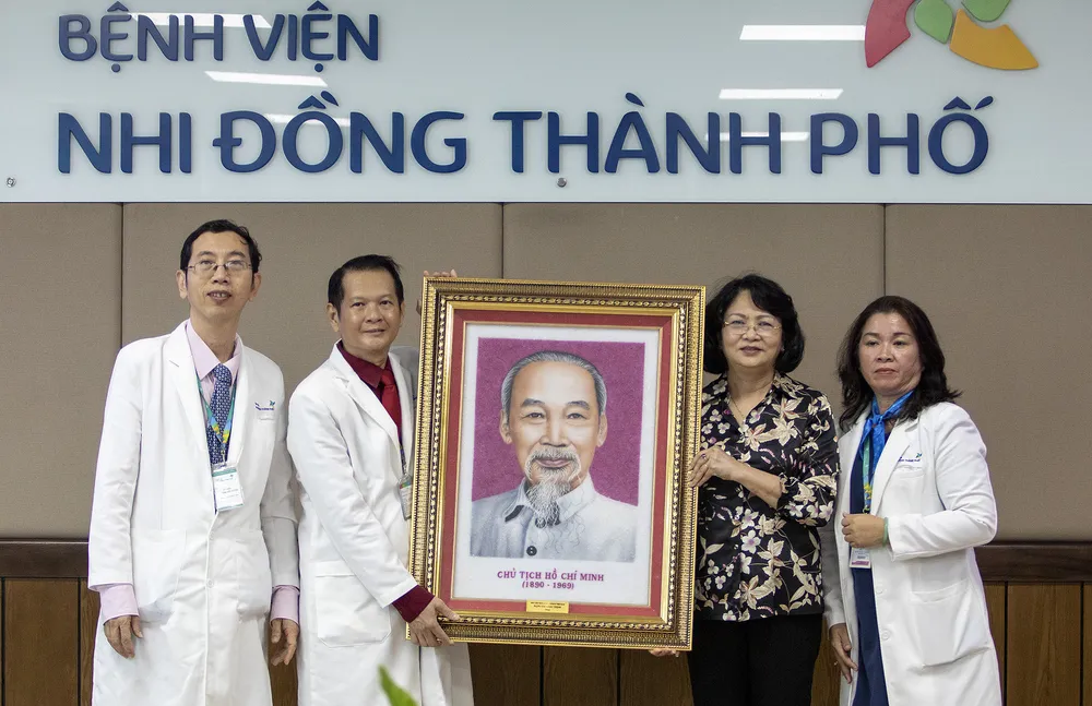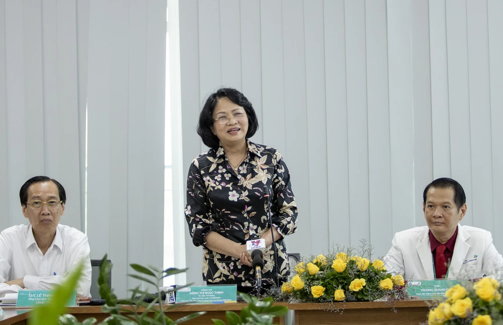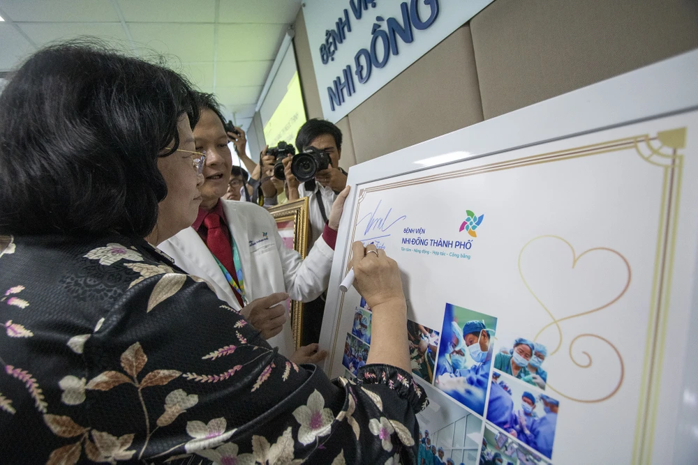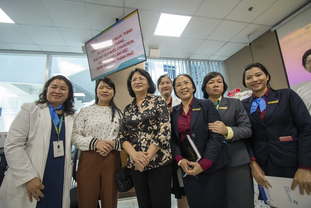 Phó chủ tịch nước Đặng Thị Ngọc Thịnh, lãnh đạo Bộ y tế, UBND TP.HCM, sở y tế TP.HCM chúc mừng Bệnh viện Nhi đồng Thành phố.