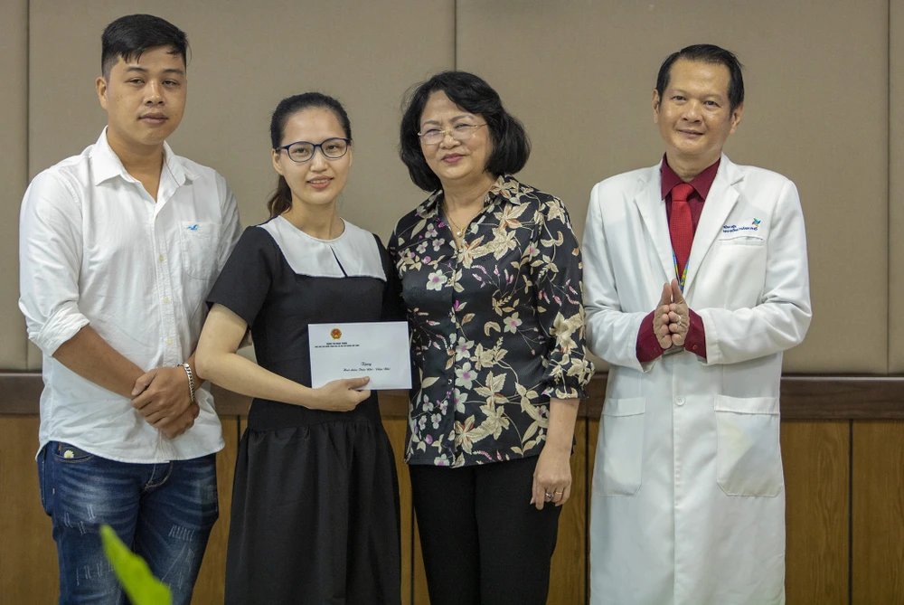 Nhân dịp này, Quỹ bảo trợ trẻ em cũng tặng 20 triệu đồng tiền mặt và những dụng cụ cần thiết cho hai bé. Quyền Bộ trưởng Bộ Y tế, Nguyễn Thanh Long đã tặng bằng khen cho kíp mổ.