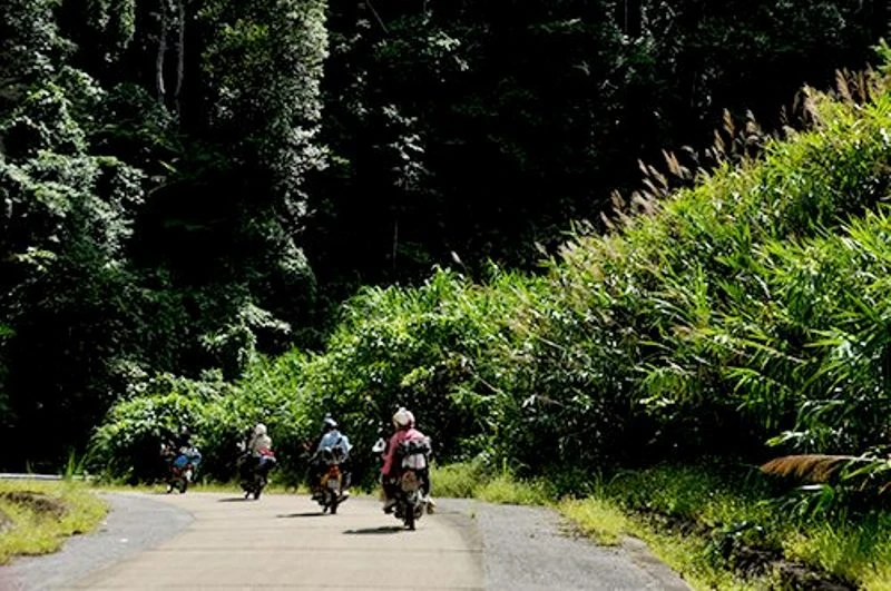 Xung quanh đường đi chỉ có rừng núi, hoang vu, có những đoạn chạy mãi vẫn không thấy một bóng người, thi thoảng lắm mới có một chiếc xe vèo qua. Kiếm được quán xá dọc đường là điều không tưởng nhưng nhờ vậy chúng tôi có một buổi trưa tuyệt vời trên lưng chừng núi tại một gia đình người dân tộc Vân Kiều.