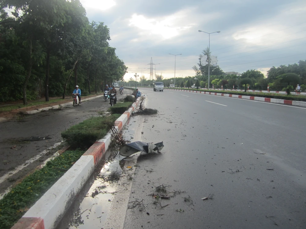 Theo dấu vết tại hiện trường, xe ôtô đã đâm vào con lươn phía bên phải và leo lên mặt con lươn húc đổ trụ điện và cây xanh. Sau đó xe tiếp tục lao xuống mặt đường, văng qua con lươn bên trái cày xới cây xanh, húc đổ trụ rào ngăn cách và quay ngược đầu với hướng đang lưu thông.