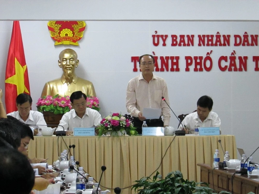 Lãnh đạo bốn tỉnh, thành gồm An Giang, Cần Thơ, Hậu Giang và Kiên Giang chủ trì cuộc họp Ban điều hành ngày 17-10 tại TP Cần Thơ. Ảnh: NN