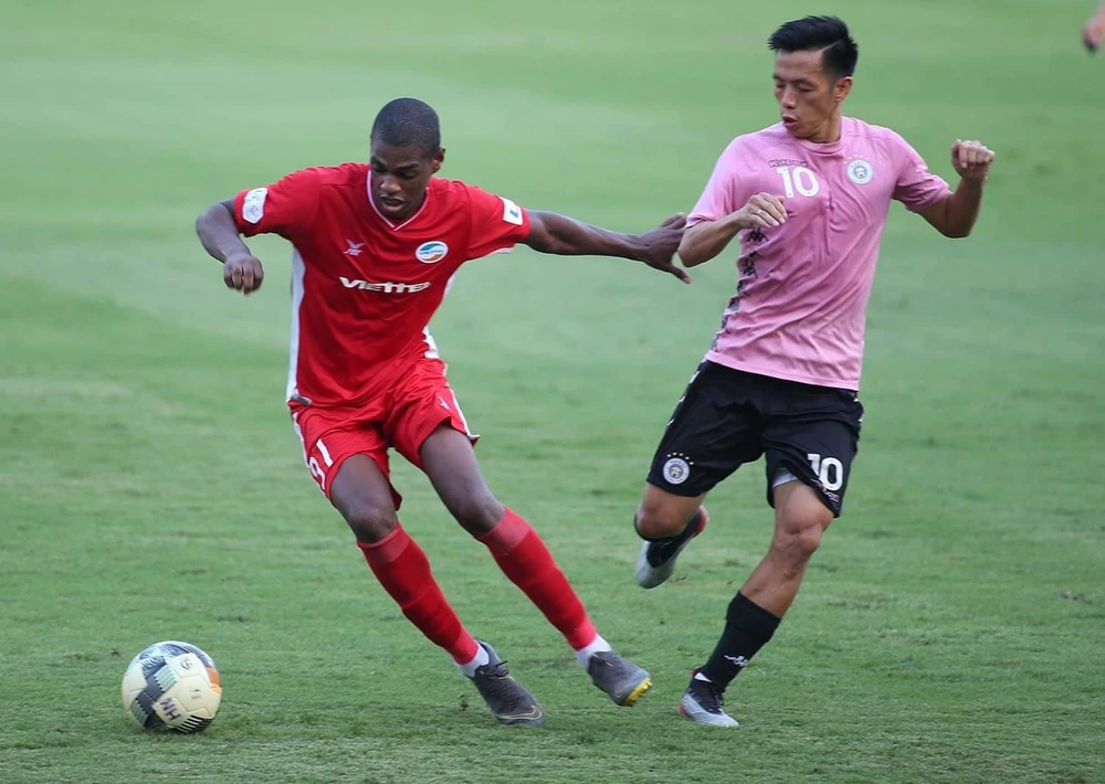 Trong trận giao hữu lượt về giữa Hà Nội- Viettel, Hà Nội lại thắng 3-0, sau lượt đi chiều 2-9, Hà Nội cũng thắng 3-1. Ảnh: NGỌC DUNG