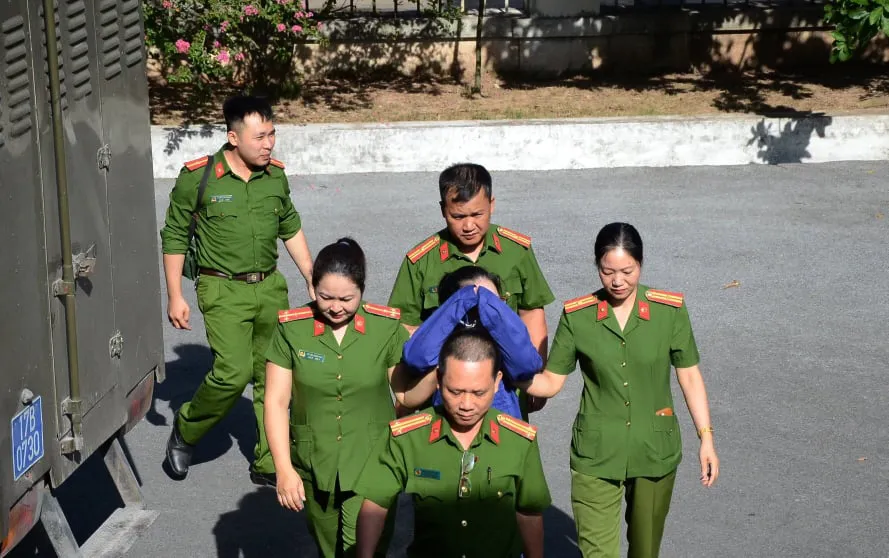 Bị cáo Trang được đưa tới phòng xử trong tình trạng sức khoẻ ổn định. Khi được dẫn giải vào phòng xử án, bị cáo luôn cúi đầu, dùng tay che mặt.