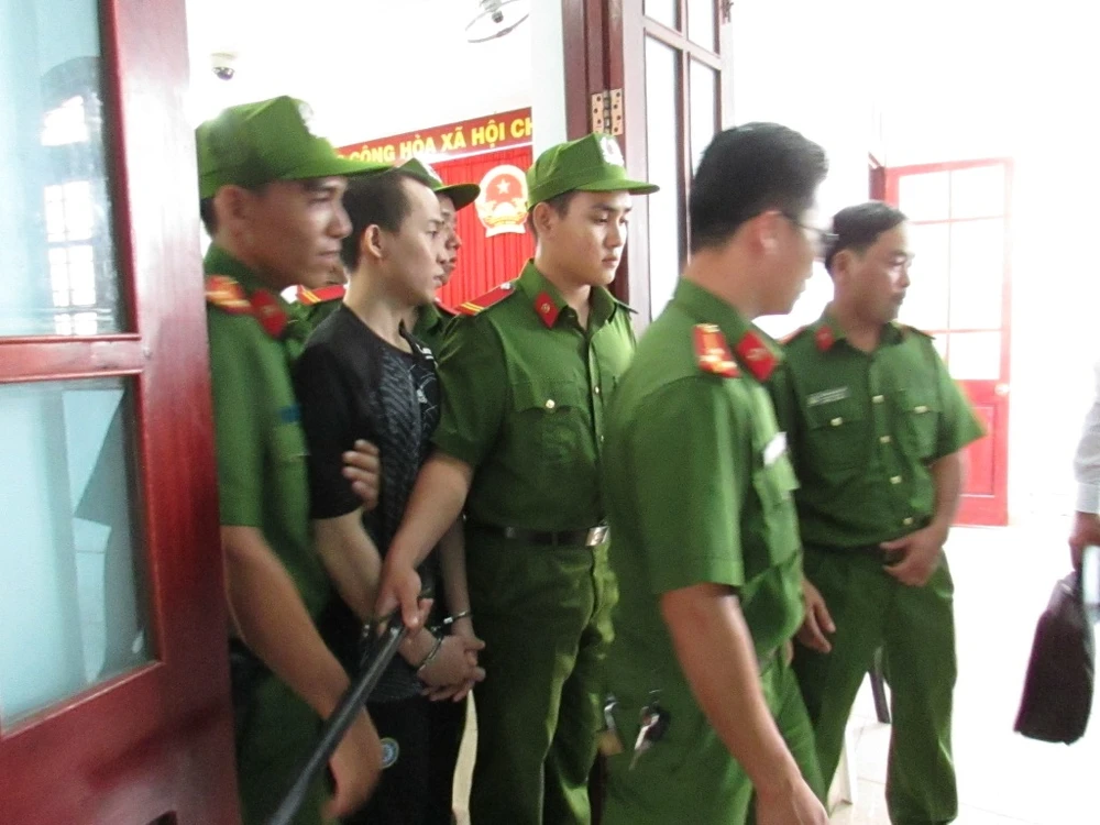 Bị cáo Đức được cán bộ cảnh sát tư pháp dẫn giải ra xe phạm sau khi tòa tuyên án trưa 31-8. Ảnh: NN