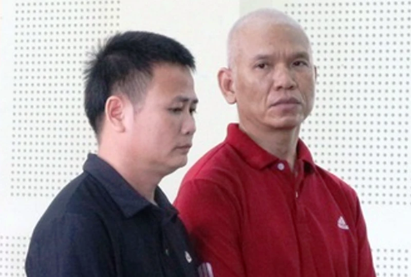 Nguyễn Văn Hào (áo đỏ) và Nguyễn Văn Duận tại tòa