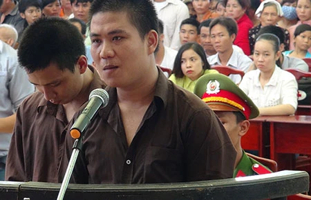 Bị cáo Chuyên (cúi mặt) và Lập tại phiên xử. Ảnh: N.ĐỨC