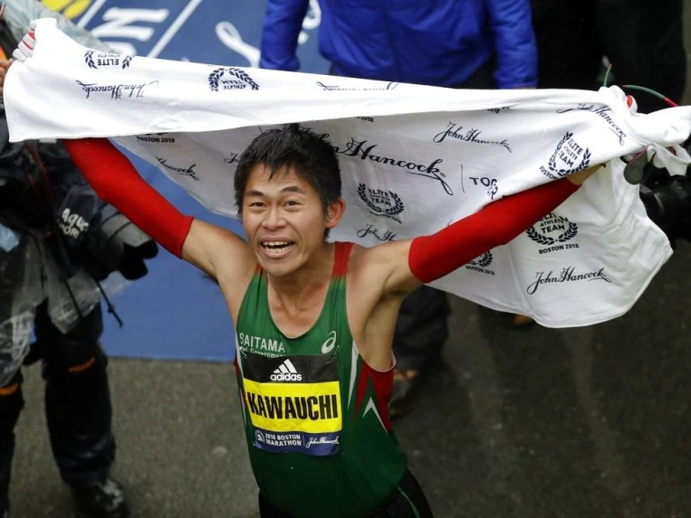 Tại cuộc chạy Marathon Boston vừa qua, Kawauchi về nhất với thời gian 2 giờ 15 phút 58 giây, đánh bại đương kim vô địch Kirui (về nhì) với thành tích 2 giờ 18 phút 36 giây.