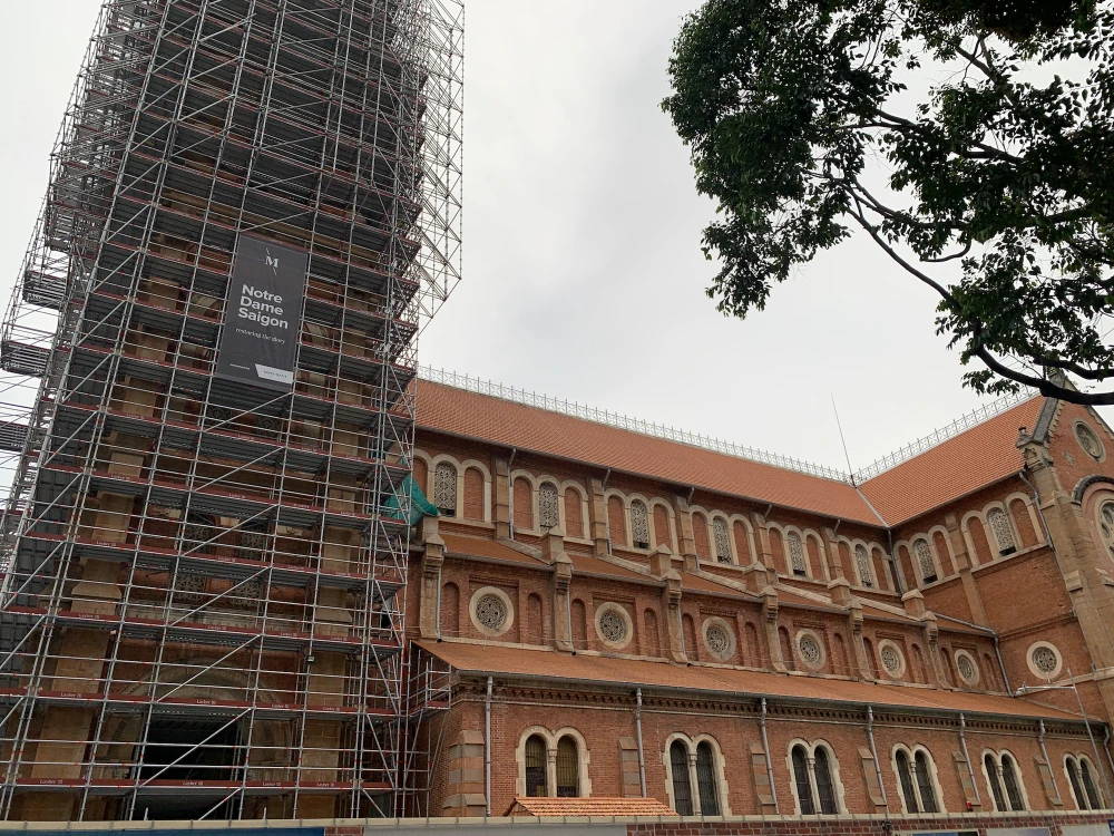 Nhà thờ Chính toà Đức Bà Sài Gòn thuộc Tổng Giáo phận Sài Gòn đang trong giai đoạn trùng tu. Ảnh: Q.T