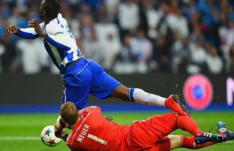 Cú cản phá bất lực của thủ môn Neuer khiến Bayern thua sớm từ chấm 11 m và tuột xích trước Porto. Ảnh: GETTY IMAGES