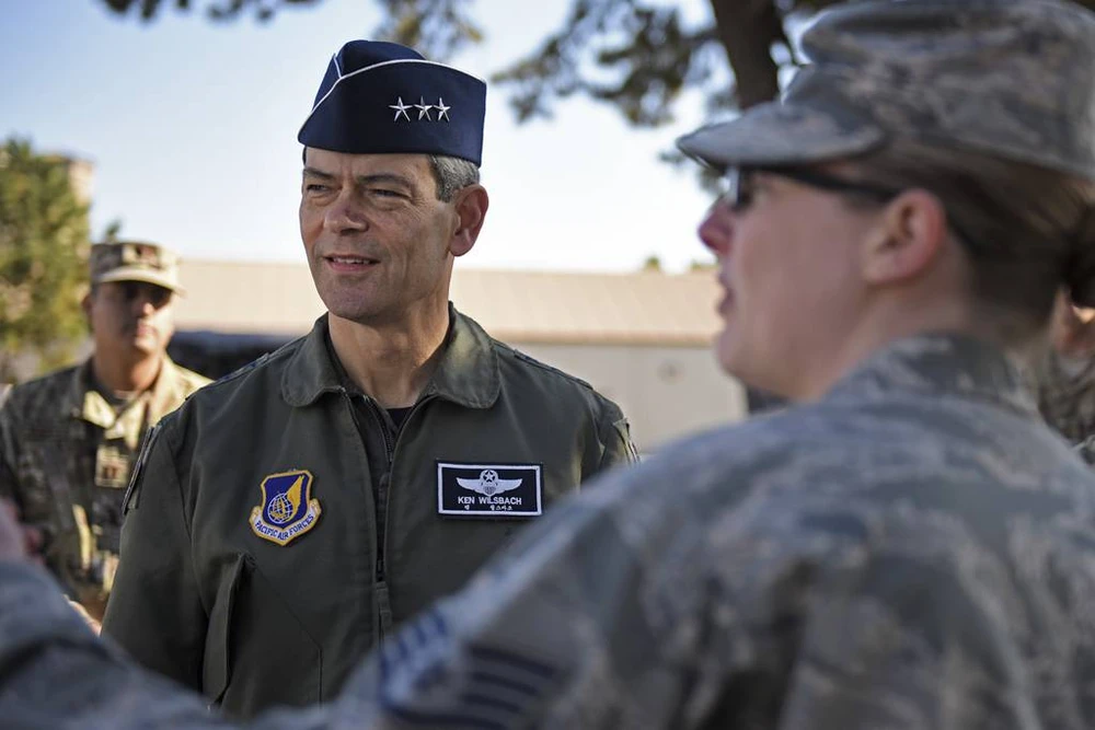 Tướng Kenneth Wilsbach (giữa) trong một chuyến thăm căn cứ không quân Kunsan ở Hàn Quốc năm 2019. Ảnh: AIR FORCE TIMES
