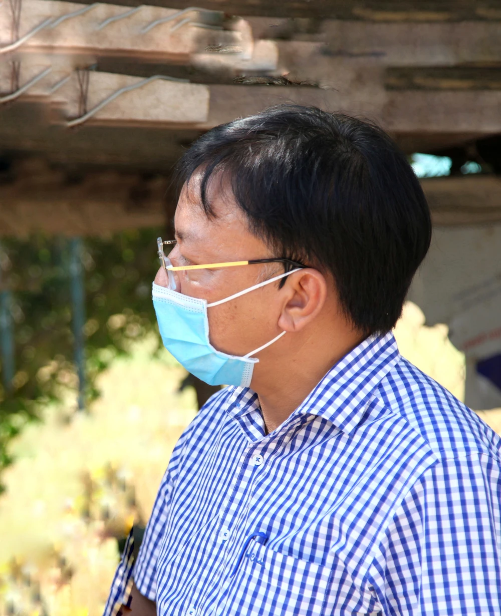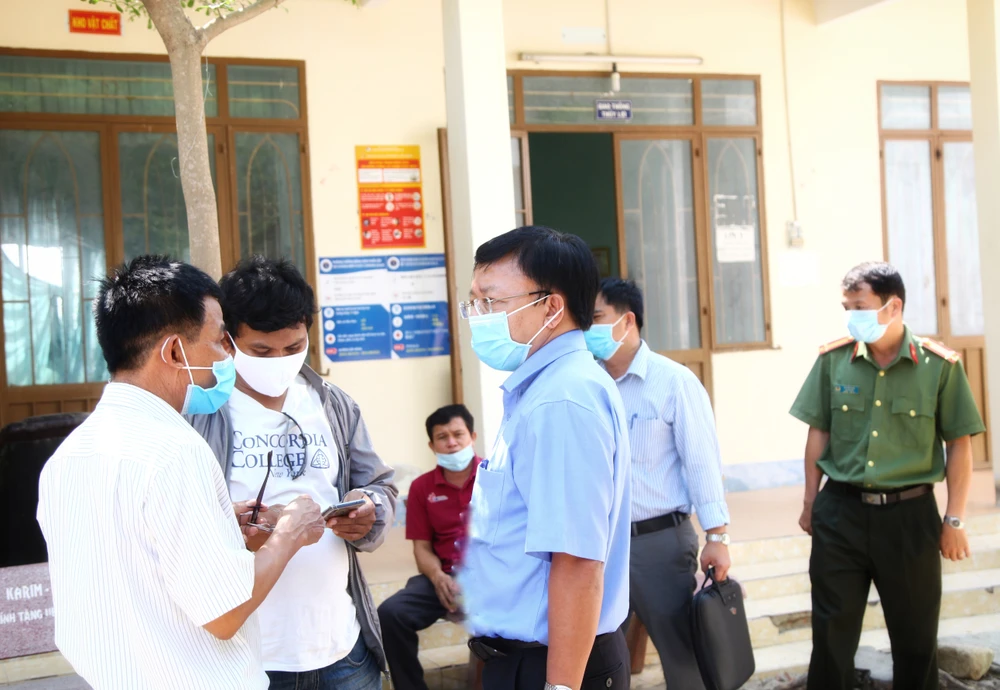 Ông Lê Huyền, Phó bí thư, Chủ tịch UBND, Trưởng ban phòng, chống dịch bệnh COVID-19 huyện Thuận Nam, tại khu vực chốt cách ly Văn Lâm 3. Ảnh: NÚI XANH
