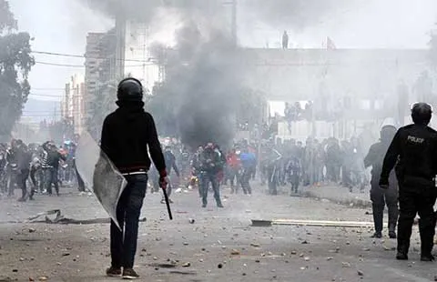 Tại khu vực thủ đô Tunis, những người biểu tình phong tỏa một con đường huyết mạch và nổi lửa đốt vỏ xe. Họ đập phá hai cửa hàng và một chi nhánh ngân hàng.