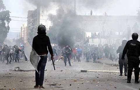 Người biểu tình xung đột với cảnh sát tại Kasserine ngày 21-1. Ảnh: AFP