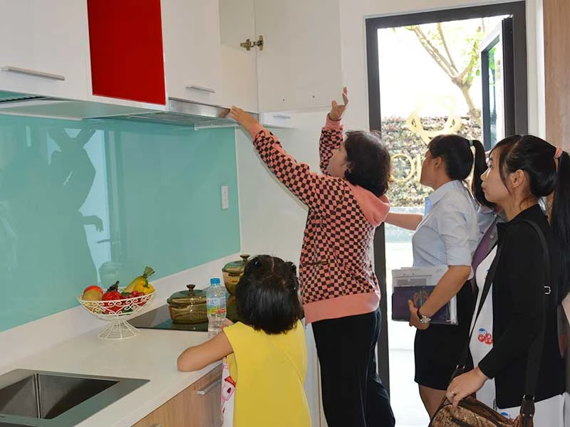 Khách hàng đang xem nhà mẫu. Ảnh: Q.HUY