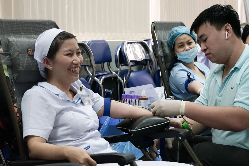 Các nhân viên y tế tại BV Từ Dũ (TP.HCM) tham gia hiến máu lần thứ 3 tại BV trong năm 2019 mới đây. Ảnh: CD