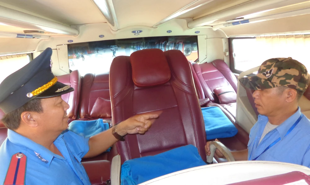 Việc kiểm tra xe khách lắp thêm/tháo bớt giường/ghế sẽ được thanh tra giao thông kiểm tra nghiêm trước khi xe xuất bến hoặc phối hợp với các lực lượng kiểm tra xe đang lưu thông trên đường. Ảnh: LĐ