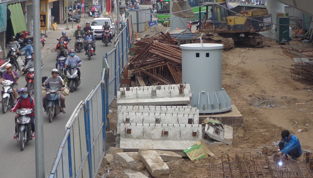 Các rào chắn công trình phải tém dẹp gọn gàng lấy đường cho dân đi. Ảnh: LĐ