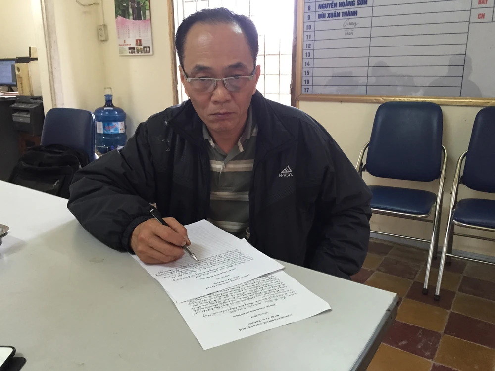 Đối tượng Doãn tại cơ quan cảnh sát điều tra. Ảnh: Hải Phong.