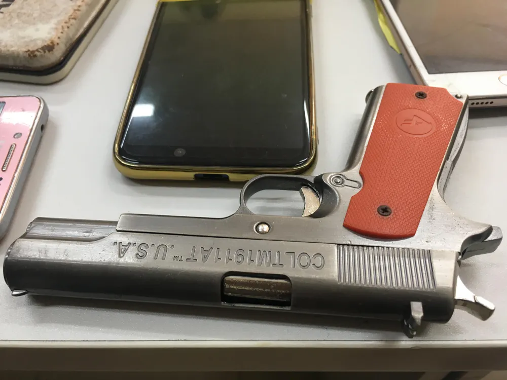 Kích điện, súng, dao... thu tại một điểm cà phê kích dục. Ảnh: NGUYỄN TRÀ.