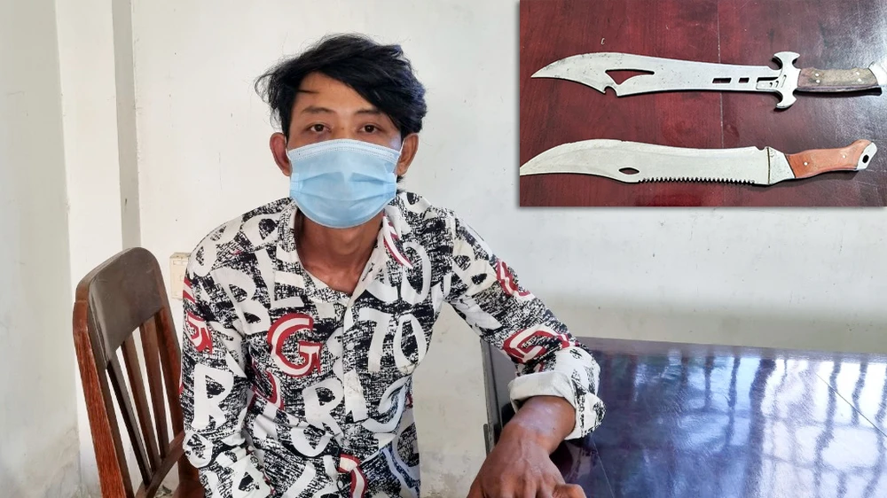 Danh Bé Em (ảnh lớn) và dao tang vật bị công an thu giữ. Ảnh: VĂN VŨ