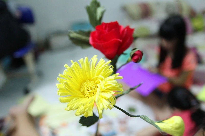 Những bông hoa đầu tiên do chính tay các em làm nhân ngày 20-11 - Ảnh: HOÀNG GIANG