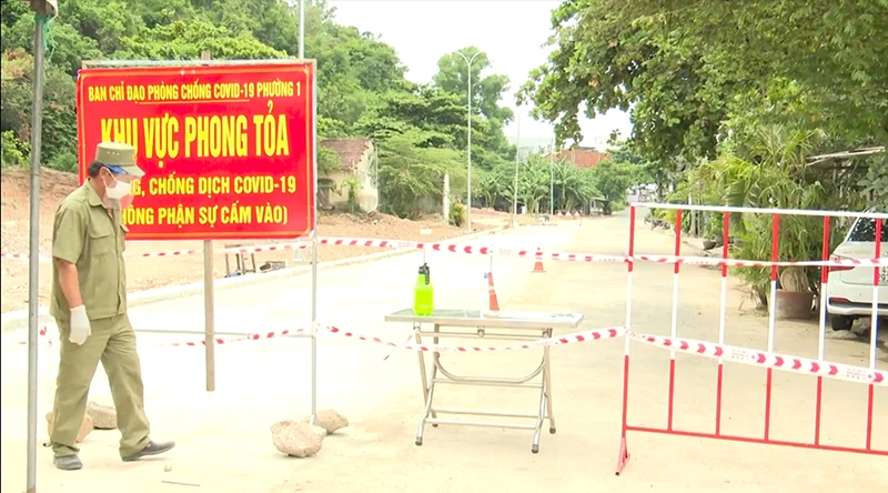 Phong tỏa một khu vực có người mắc COVID-19 ở TP Tuy Hòa. Ảnh: VŨ XUÂN