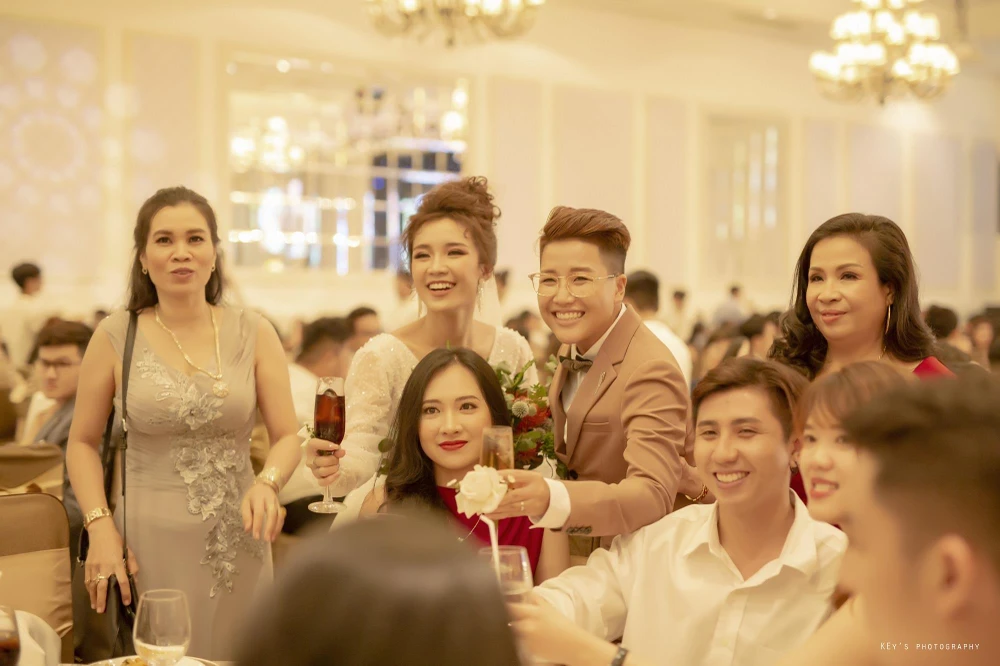 Xuất hiện tại lễ cưới của cặp đôi còn có sự xuất hiện của hàng loạt nghệ sĩ nổi tiếng: Đông Đào, Lê Minh Trung, Phú Qúy, Trọng Khương, Lâm Lộ Lộ…