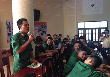 Chiến sỹ trình bày nguyện vọng nghề nghiệp với các doanh nghiệp sau khi xuất ngũ. Ảnh: P.ĐIỀN