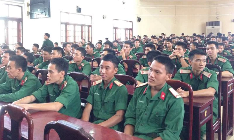 Chương trình tư vấn nghề nghiệp và thông tin việc làm cho 500 chiến sĩ sắp xuất ngũ. Ảnh: P.ĐIỀN