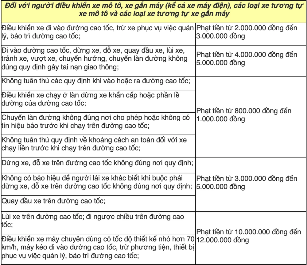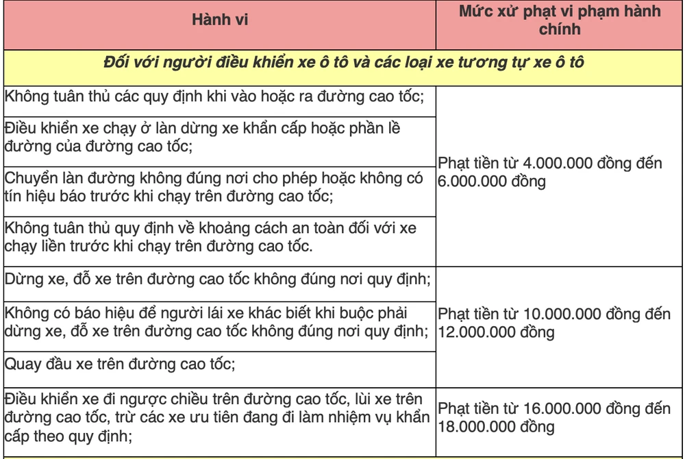 Do đó, để tránh bị xử phạt khi di chuyển trên các tuyến cao tốc, tài xế cần lưu ý những mức phạt dưới đây: