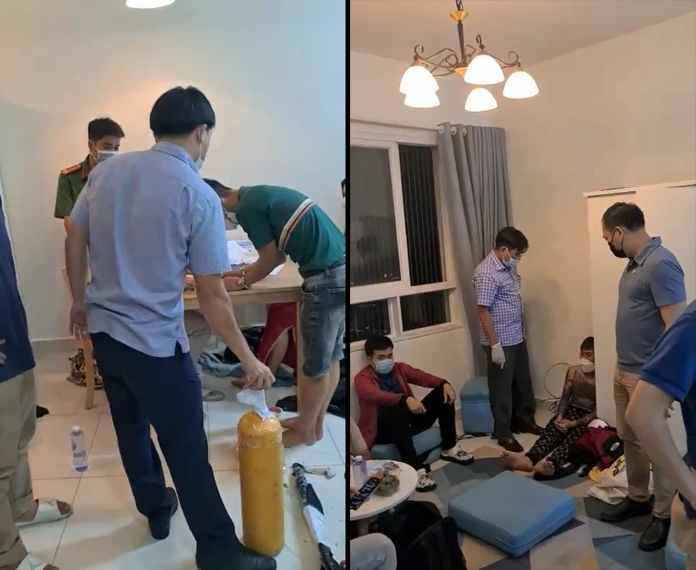 Làm việc với cơ quan công an, các đối tượng trên khai nhận, căn hộ do Trịnh Thế Anh (23 tuổi), Nguyễn Khắc Anh (20 tuổi) và Đỗ Văn Kiên (27 tuổi, cùng ngụ Hải Phòng) đứng tên thuê lại để vừa làm chỗ ở vừa là nơi để cất giấu, tàng trữ, mua bán ma túy và tổ chức sử dụng ma túy.