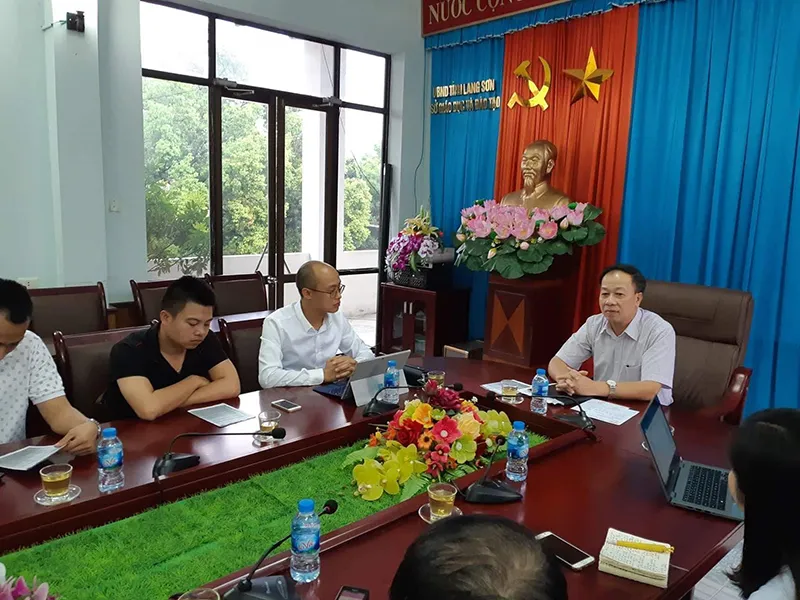 Sở GD&ĐT tỉnh Lạng Sơn đang trả lời báo chí vào chiều 18-7 xung quanh điểm thi cao bất thường của tỉnh này. Ảnh: BHP